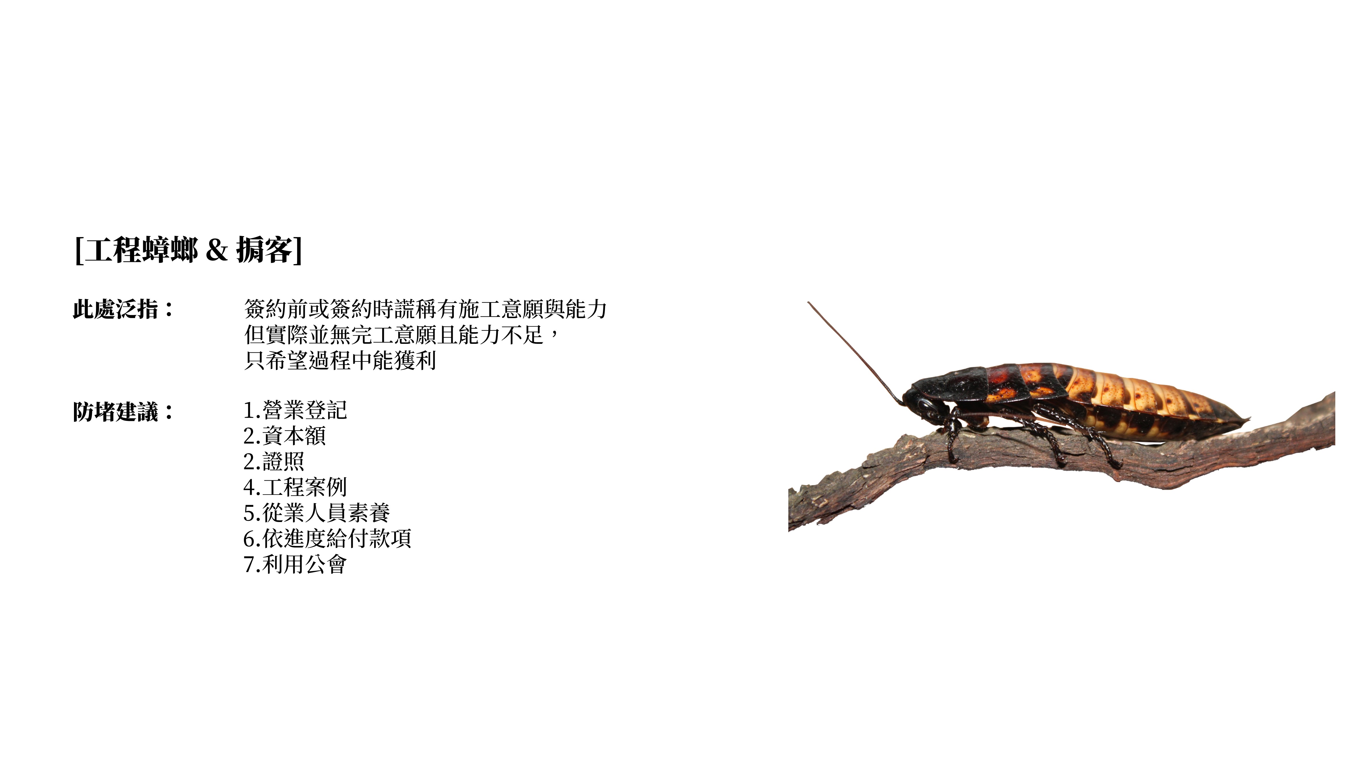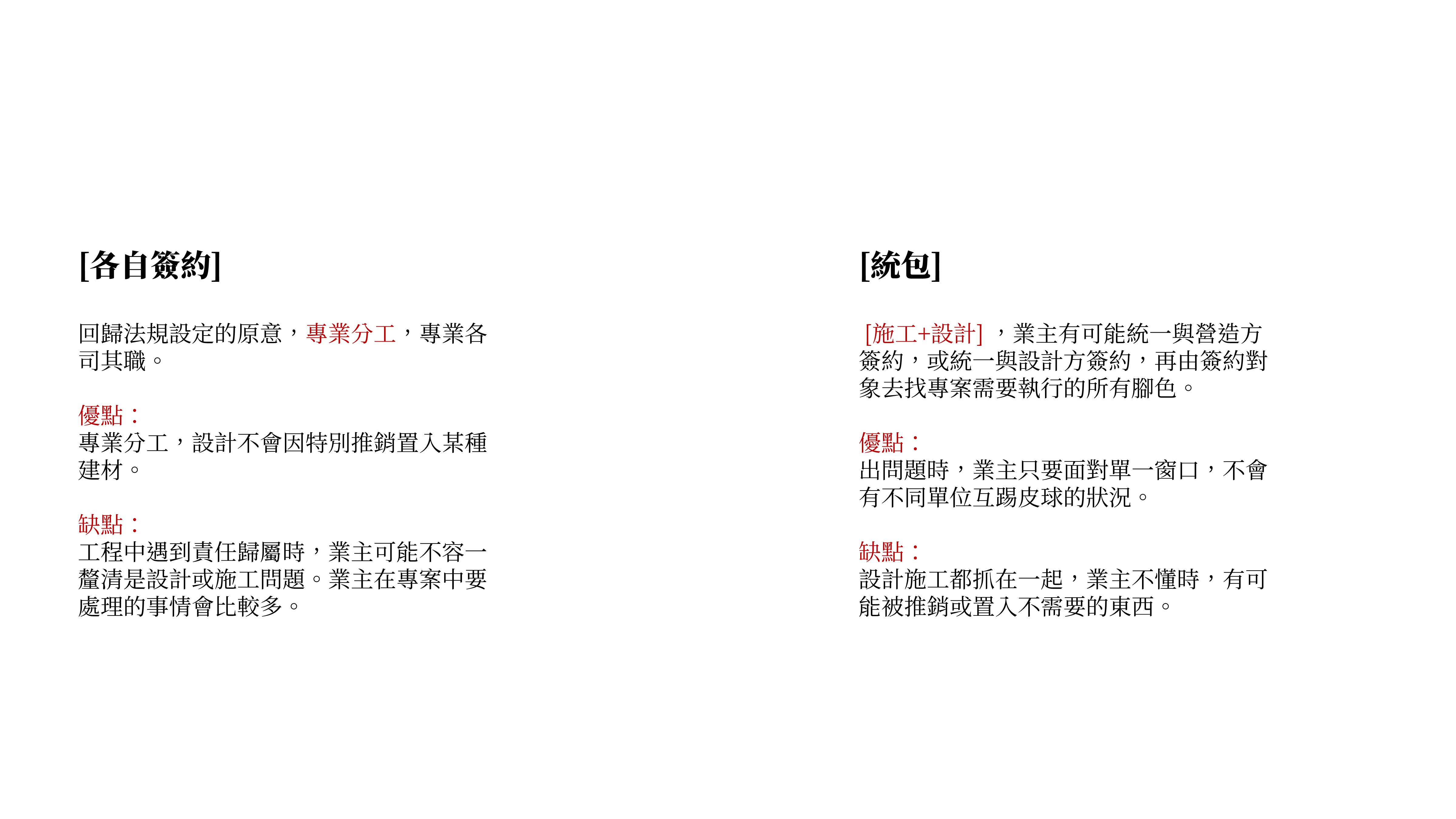 ___各自簽約_p8 / 統包_P9 / 優缺點_P11 / 留意複委託報價_P15 / 工程蟑螂&掮客_p16